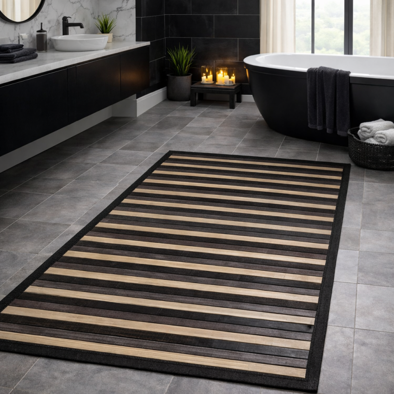 Realizzati con listelli di bamboo larghi circa 17 mm, selezionati per garantire maggiore stabilità e resistenza, questi tappeti sono ideali per ambienti come cucina e bagno, dove praticità e durata sono fondamentali. La struttura a listelli impedisce l’assorbimento dell’umidità, mantenendo il tappeto sempre in condizioni ottimali.