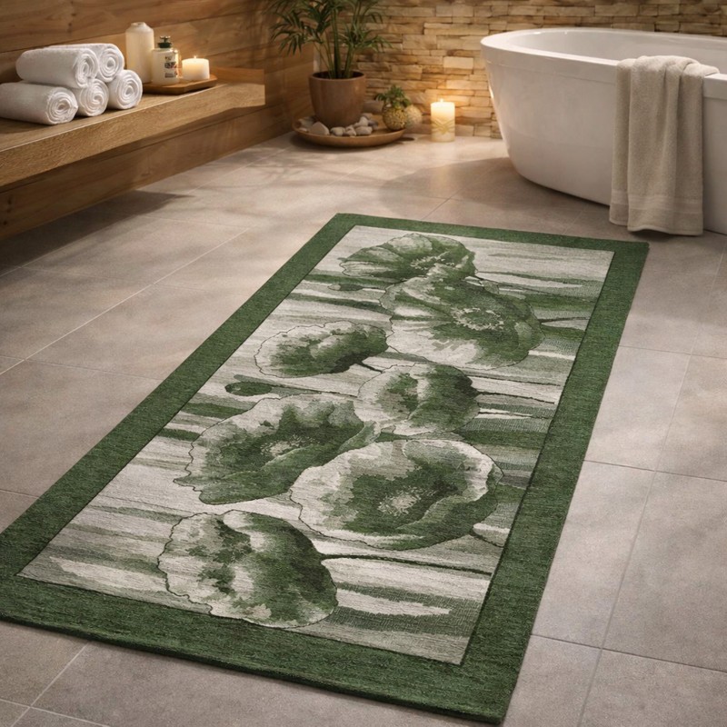 HOLLAND - Tappeto Passatoia da Bagno - Lavabile ed Antiscivolo - Ciniglia Jacquard - Verde