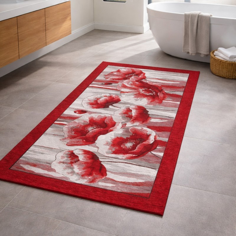 HOLLAND - Tappeto Passatoia da Bagno - Lavabile ed Antiscivolo - Ciniglia Jacquard - Rosso