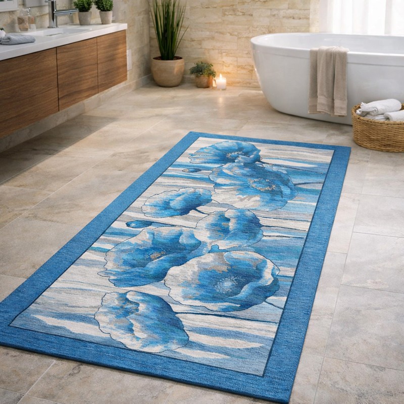 HOLLAND - Tappeto Passatoia da Bagno - Lavabile ed Antiscivolo - Ciniglia Jacquard - Blu Jeans