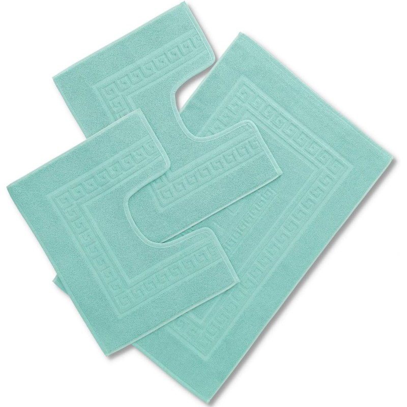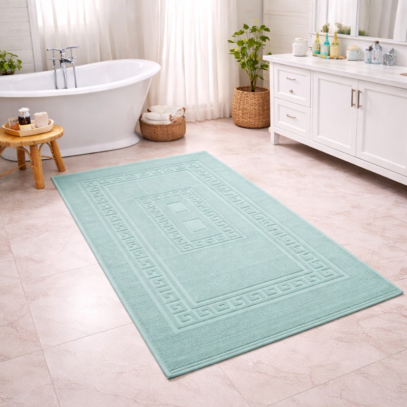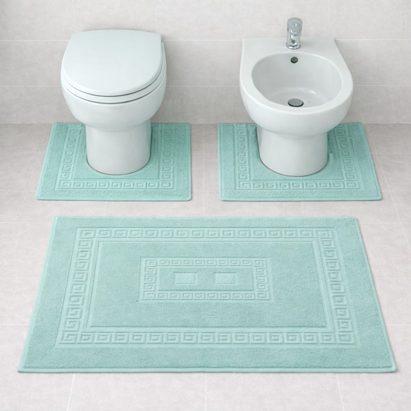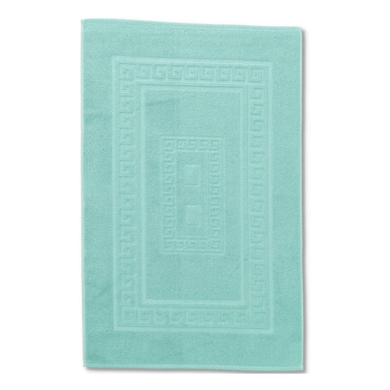 SIENA - Tappeto da Bagno Tinta Unita con Greca - Spugna di Cotone - Verde Acqua