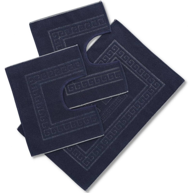SIENA - Tappeto da Bagno Tinta Unita con Greca - Spugna di Cotone - Blu
