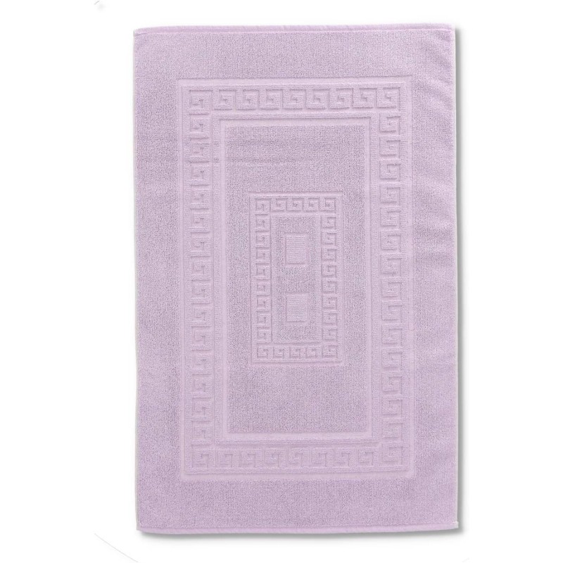 SIENA - Tappeto Set Parure 3 Pezzi da Bagno Tinta Unita con Greca - Spugna di Cotone - Lilla