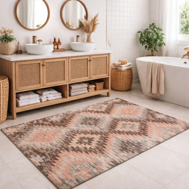 CUBA - Tappeto Passatoia da Bagno - Moderno Geometrico Kilim - Lavabile ed Antiscivolo - Rosa