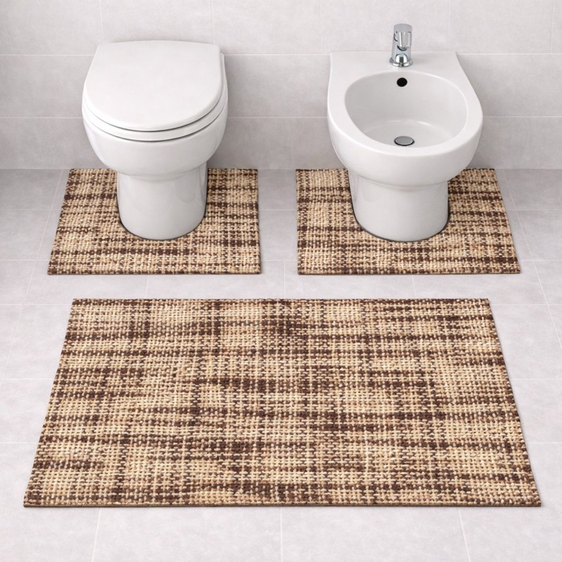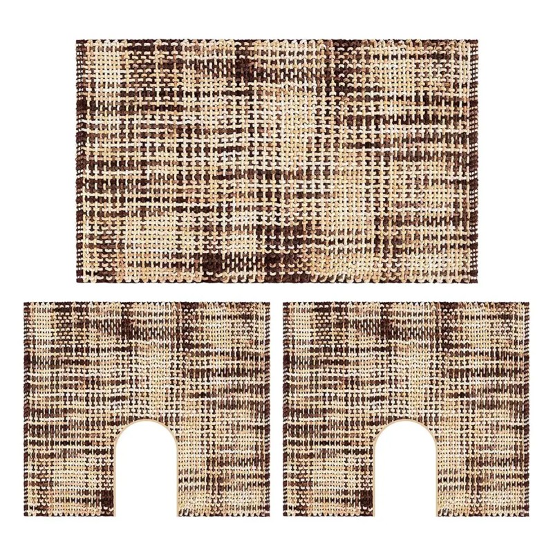WARP - Tappeto Set Parure 3 Pezzi da Bagno Intrecciato in Microfibra Assorbente - Lavabile ed Antiscivolo - Marrone