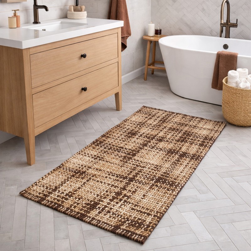 WARP - Tappeto Passatoia da Bagno Intrecciato in Microfibra Assorbente - Lavabile ed Antiscivolo - Marrone