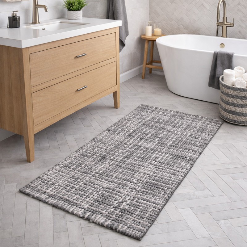 WARP - Tappeto Passatoia da Bagno Intrecciato in Microfibra Assorbente - Lavabile ed Antiscivolo - Grigio