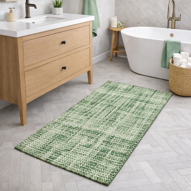 WARP - Tappeto Passatoia da Bagno Intrecciato in Microfibra Assorbente - Lavabile ed Antiscivolo - Verde