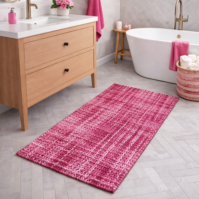 WARP - Tappeto Passatoia da Bagno Intrecciato in Microfibra Assorbente - Lavabile ed Antiscivolo - Fuxia