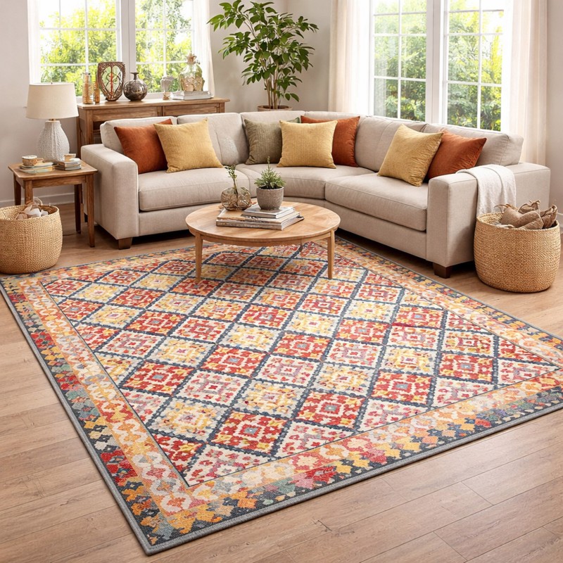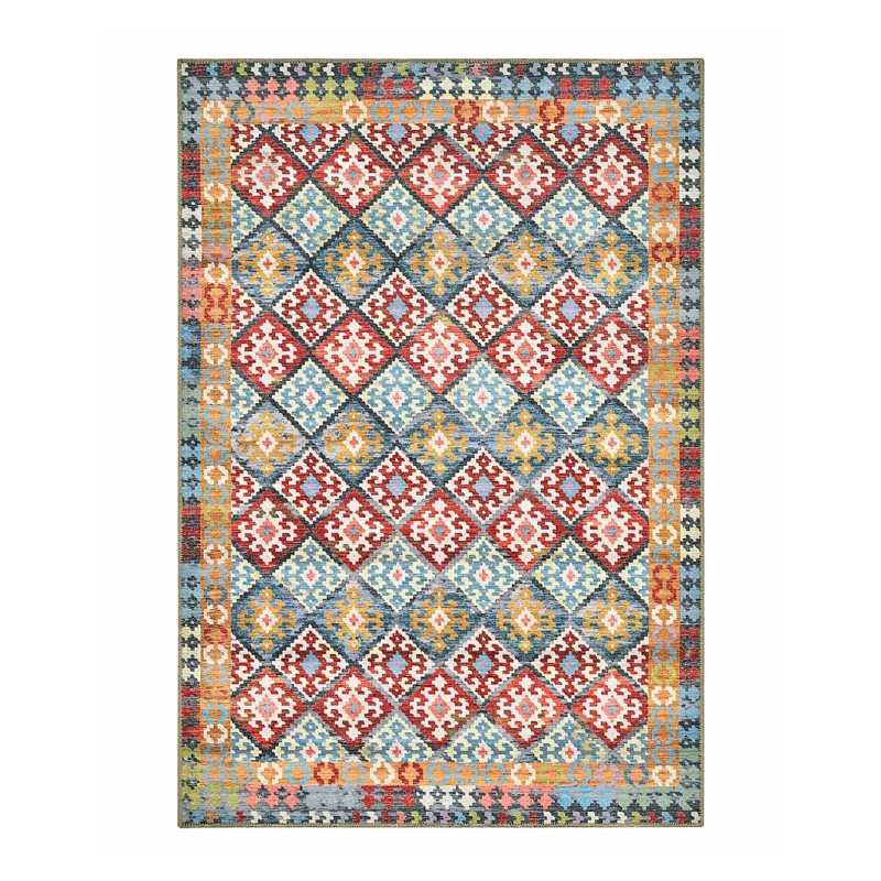 ANATOLY - Tappeto Kilim Orientale Vintage Tessere Lavabile Antiscivolo Beige Rosso Blu Verde Arancio KILIM07
