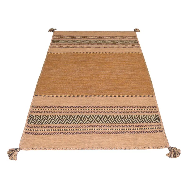 KILIM OLD - Tappeto Artigianale Annodato a mano con frange - Ciniglia & Cotone - Cuoio