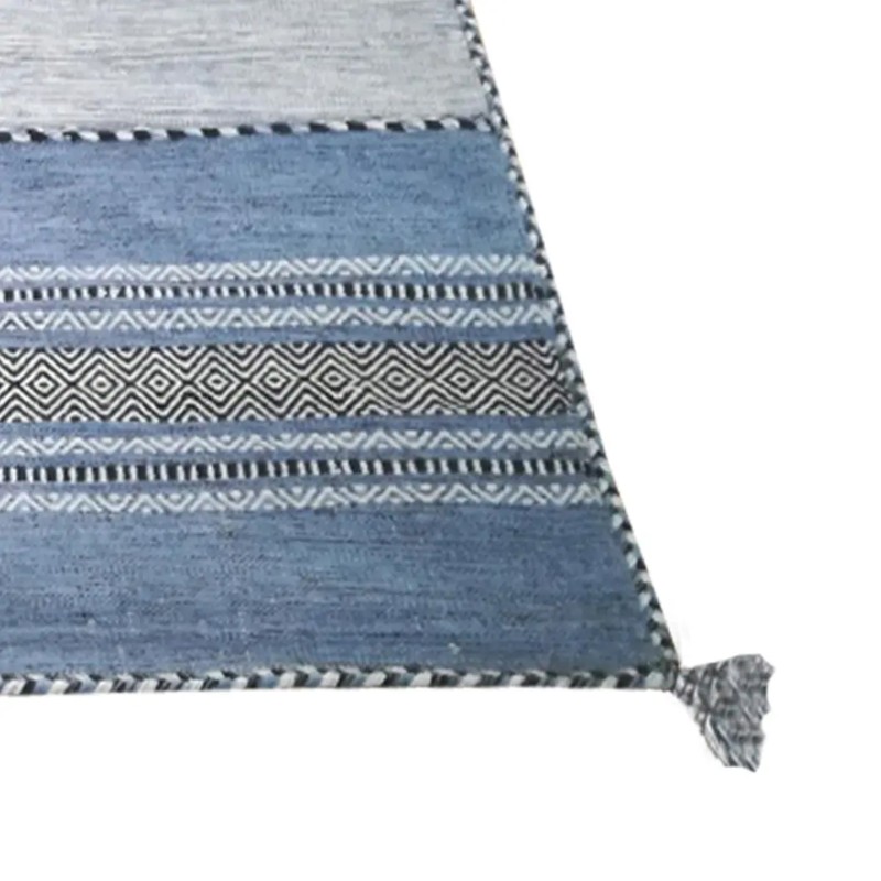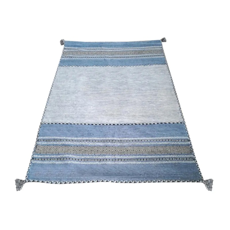 KILIM OLD - Tappeto Artigianale Annodato a mano con frange - Ciniglia & Cotone - Azzurro