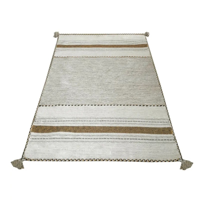 KILIM OLD - Tappeto Artigianale Annodato a mano con frange - Ciniglia & Cotone - Ocra
