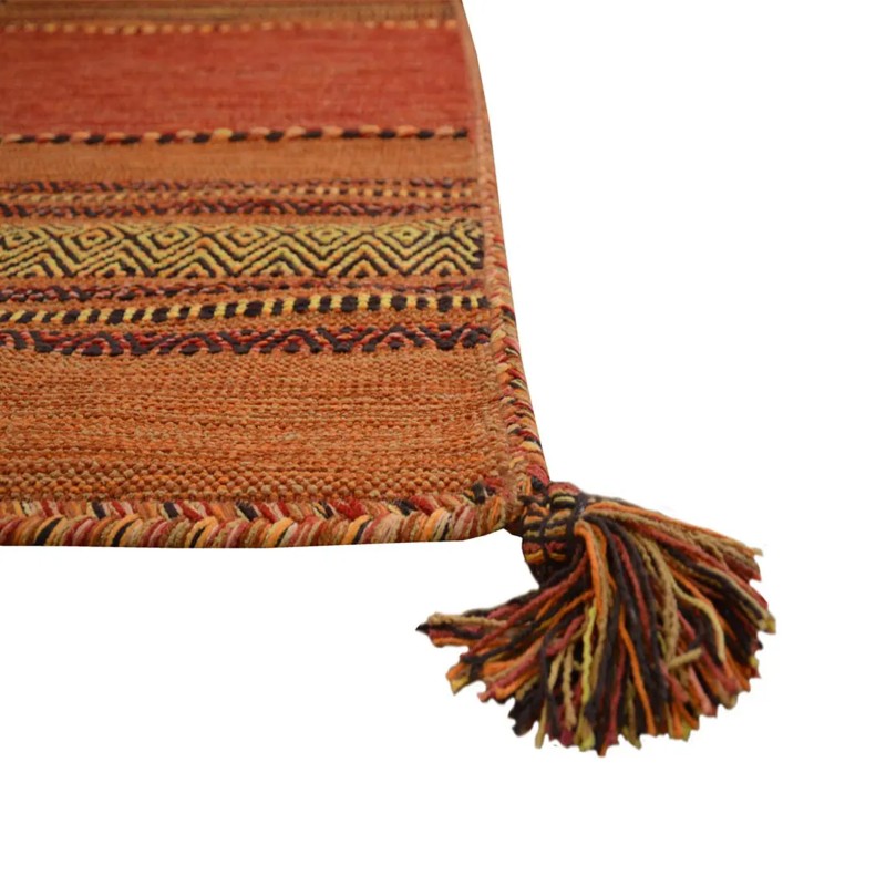 KILIM OLD - Tappeto Artigianale Annodato a mano con frange - Ciniglia & Cotone - Arancione
