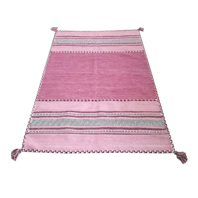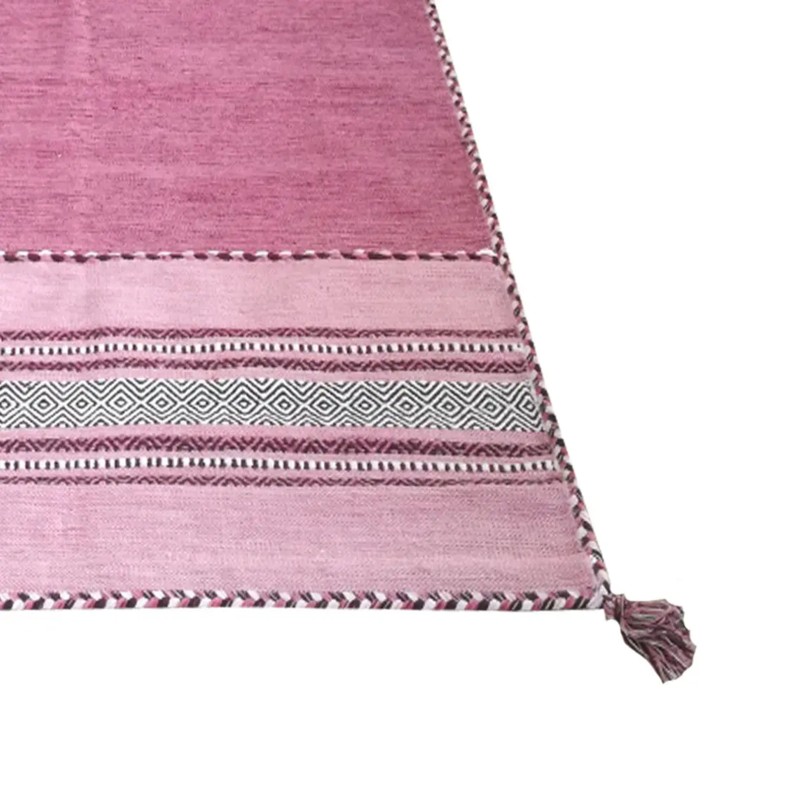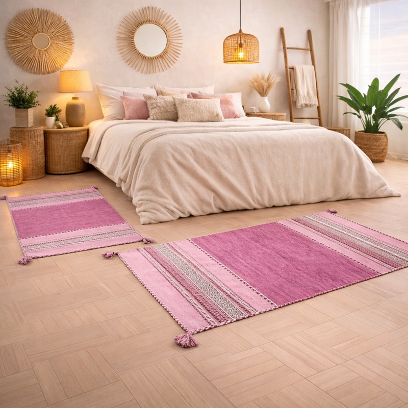 KILIM OLD - Tappeto Parure Scendiletto Artigianale Annodato a mano con frange - Ciniglia & Cotone - Rosa