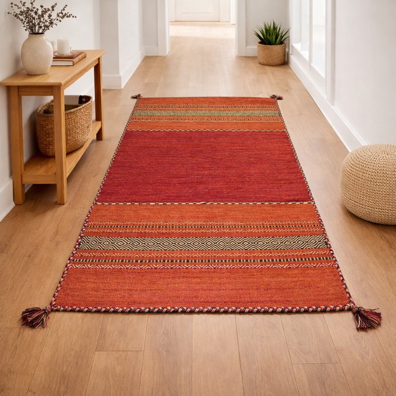Scopri i tappeti handmade Kilim Old, creazioni artigianali realizzate con grande cura dei dettagli, impreziosite da frangia annodata a mano su tutti e quattro i lati e raffinati pompons decorativi agli angoli. Ogni tappeto è un pezzo unico, capace di esprimere autenticità e carattere.