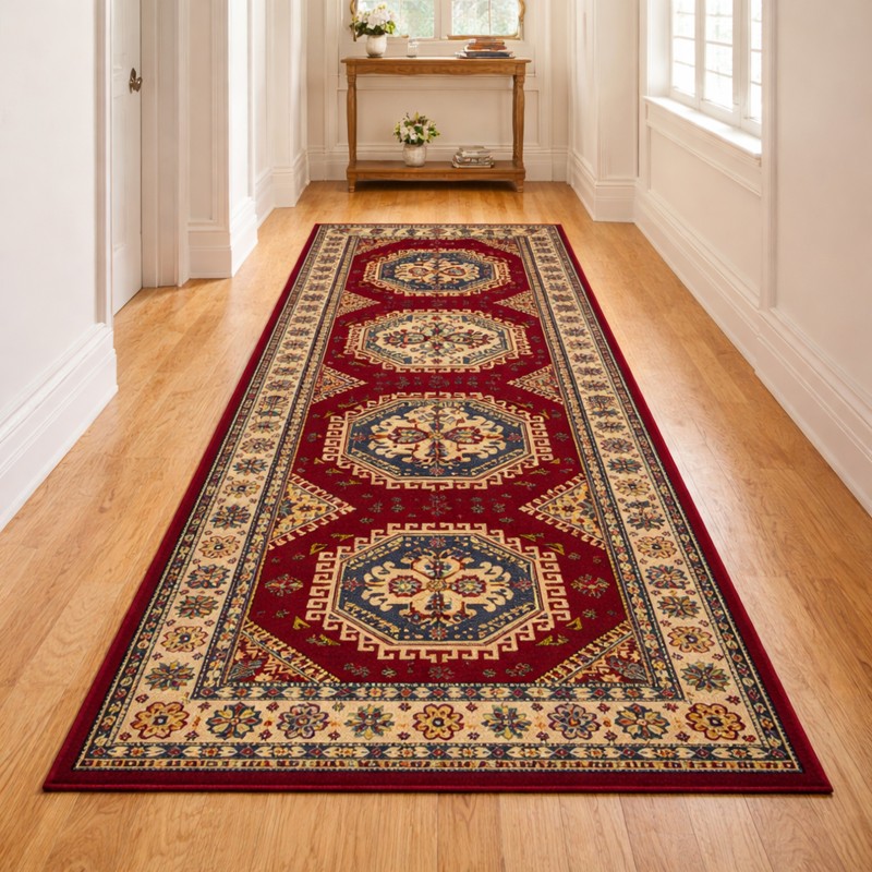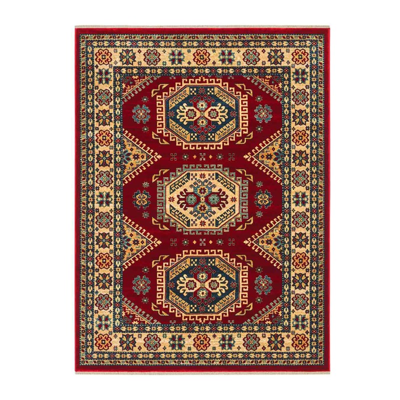 KAZAKH - Tappeto Classico Stile Caucasico Effetto Seta Geometrico Rosso 1351