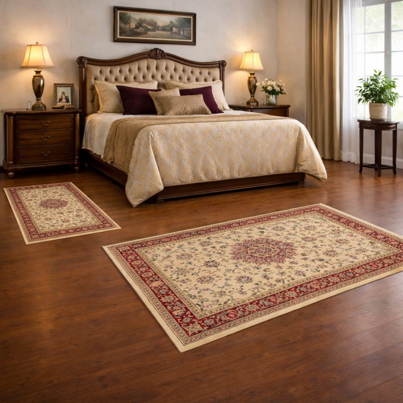 Realizzati al 100% in poliestere, i tappeti garantiscono un’elevata resistenza all’usura, sono facili da pulire e non assorbono l’umidità, assicurando prestazioni eccellenti e una lunga durata nel tempo. La fibra lucente crea un raffinato effetto seta, valorizzando i colori intensi e brillanti, che restano vivaci e stabili nel tempo.