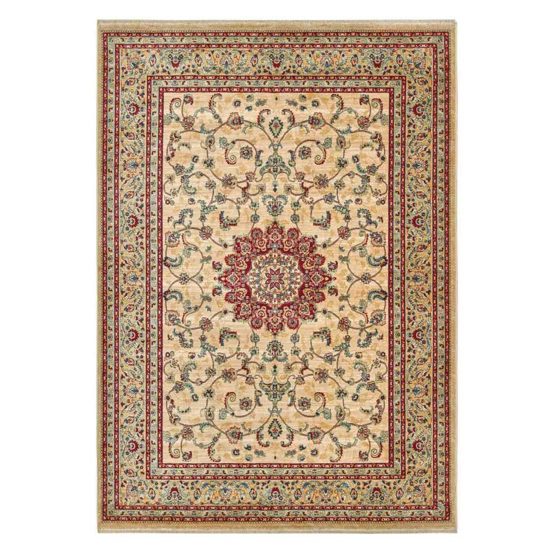 KAZAKH - Tappeto Parure Scendiletto Classico Stile Caucasico Effetto Seta Fiori Rosone Beige 2154