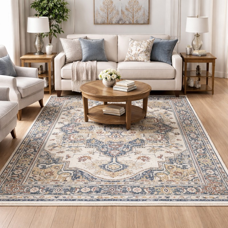 ESTRELLA - Tappeto Classico Contemporaneo Stile Persiano Geometrico Effetto Vintage Beige Blu K7071-E22181