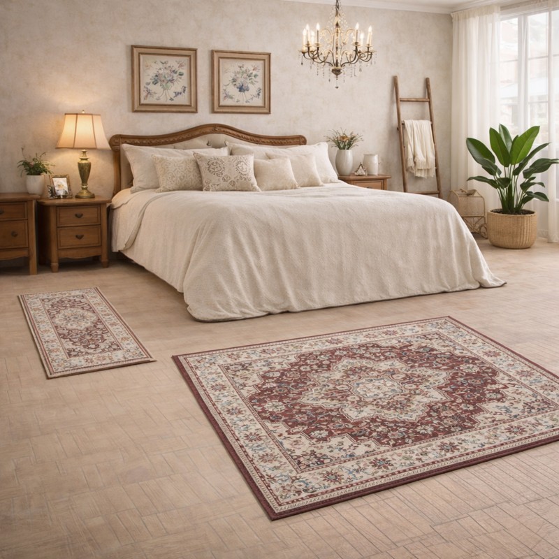 ESTRELLA - Tappeto Parure Scendiletto Classico Contemporaneo Stile Persiano Geometrico Effetto Vintage Beige Rosso K7072-E22272