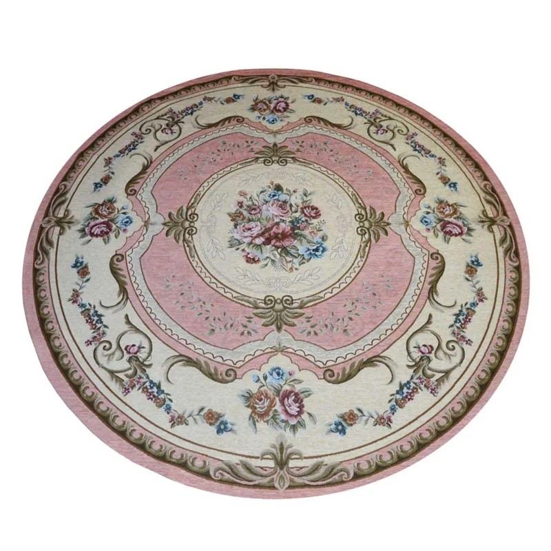 AUBUSSON - Tappeto Classico Rotondo Stile Francese '800 Ciniglia Jacquard - Rosa