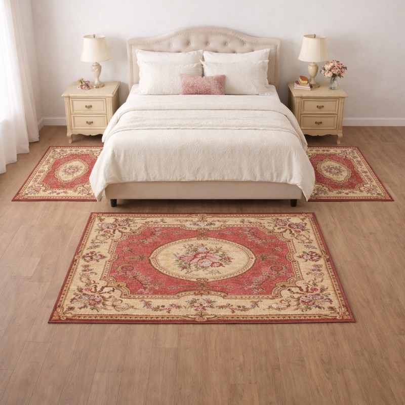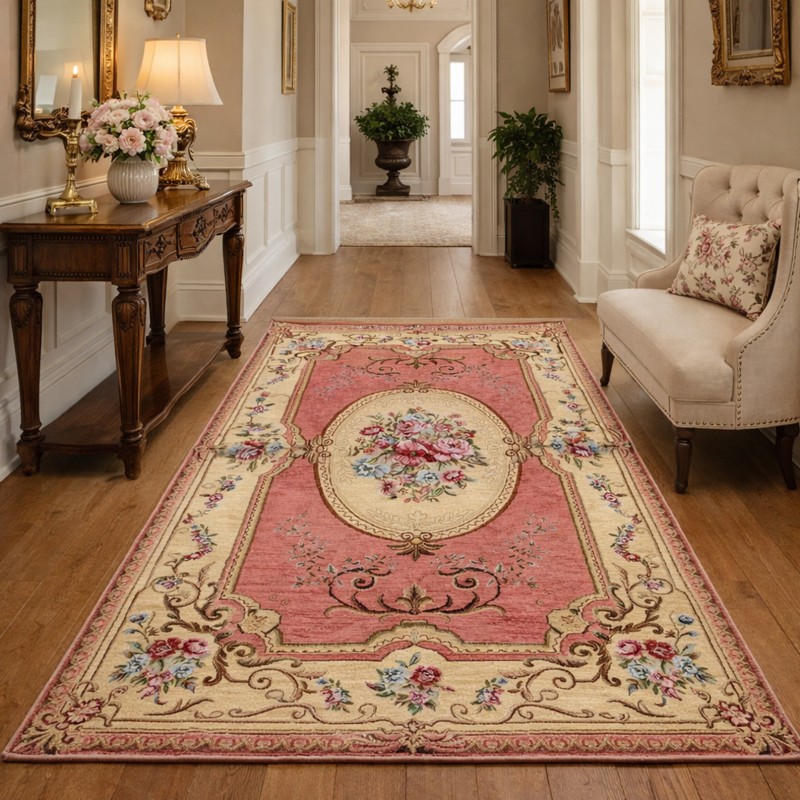 AUBUSSON - Tappeto Classico Stile Francese '800 Ciniglia Jacquard - Rosa
