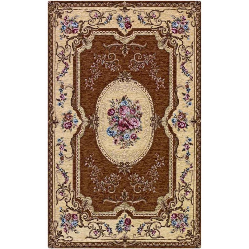 AUBUSSON - Tappeto Classico Stile Francese '800 Ciniglia Jacquard - Marrone