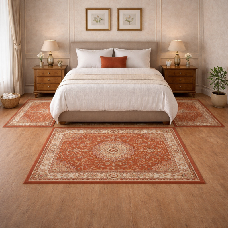 CLASSIC TOUCH - Tappeto Parure Scendiletto Classico Stile Persiano Rosa Beige - 9596
