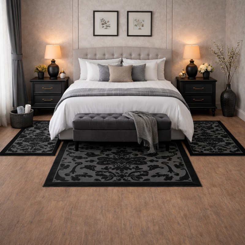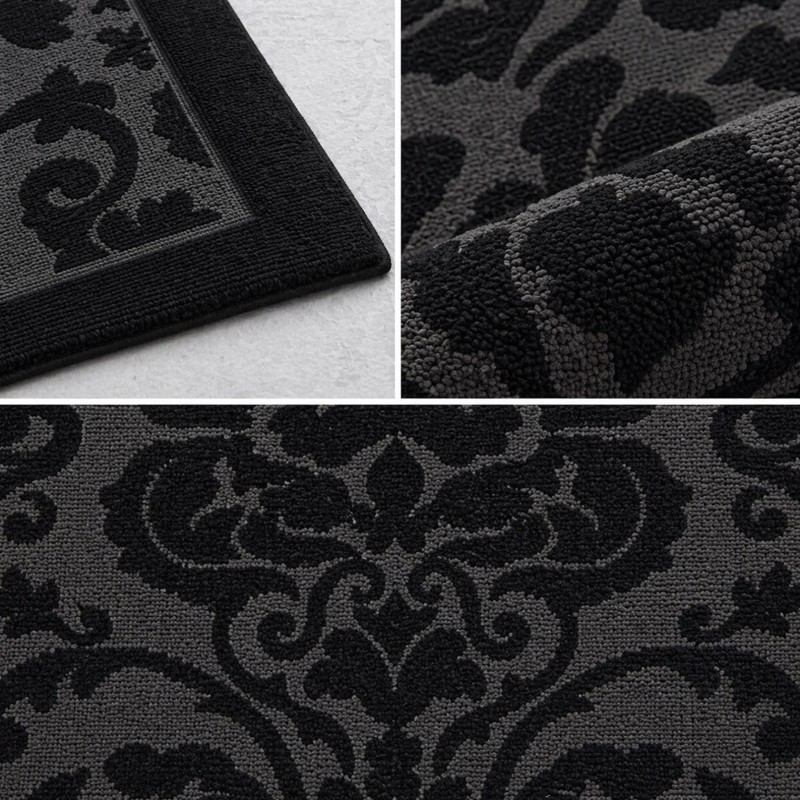 LEVANTE - Tappeto Parure Scendiletto Classico Ciniglia Jacquard Raffinato effetto Rilievo - Nero