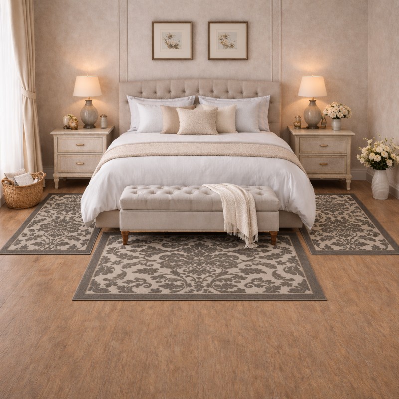LEVANTE - Tappeto Parure Scendiletto Classico Ciniglia Jacquard Raffinato effetto Rilievo - Fango