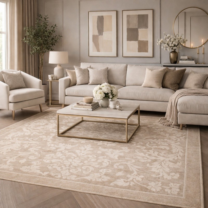LEVANTE - Tappeto Classico Ciniglia Jacquard Raffinato effetto Rilievo - Tortora