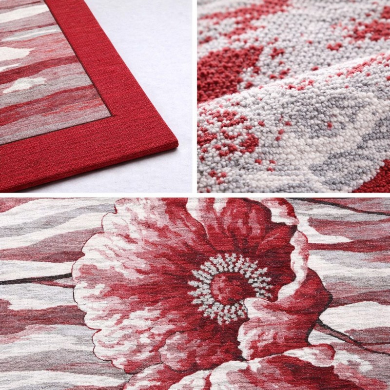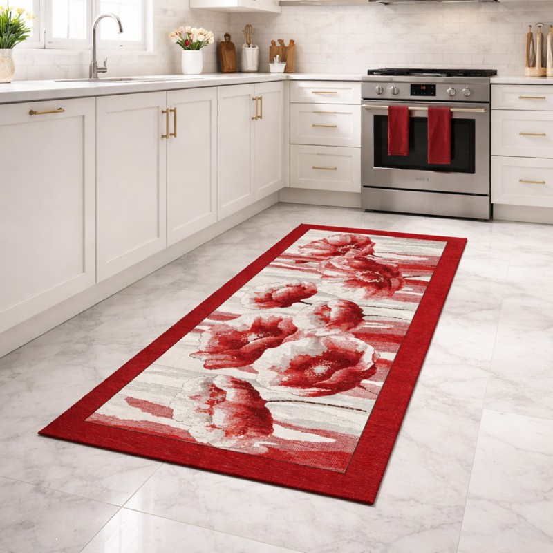 HOLLAND - Tappeto Passatoia da Cucina - Lavabile ed Antiscivolo - Ciniglia Jacquard - Rosso