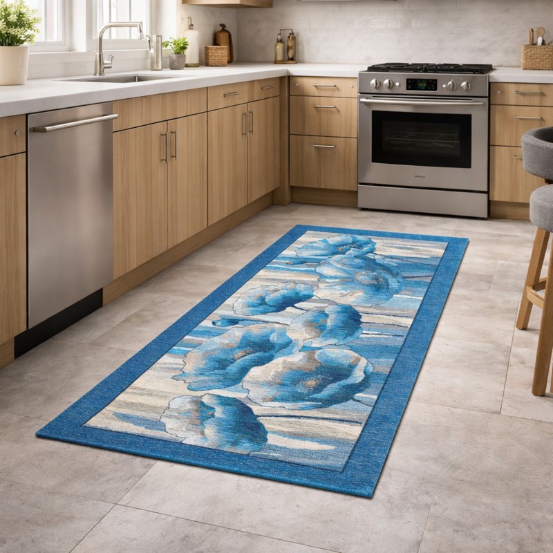 HOLLAND - Tappeto Passatoia da Cucina - Lavabile ed Antiscivolo - Ciniglia Jacquard - Blu Jeans