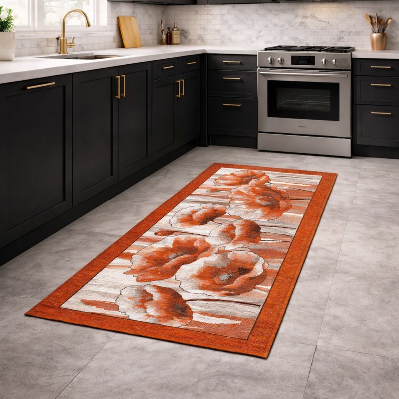 HOLLAND - Tappeto Passatoia da Cucina - Lavabile ed Antiscivolo - Ciniglia Jacquard - Arancio