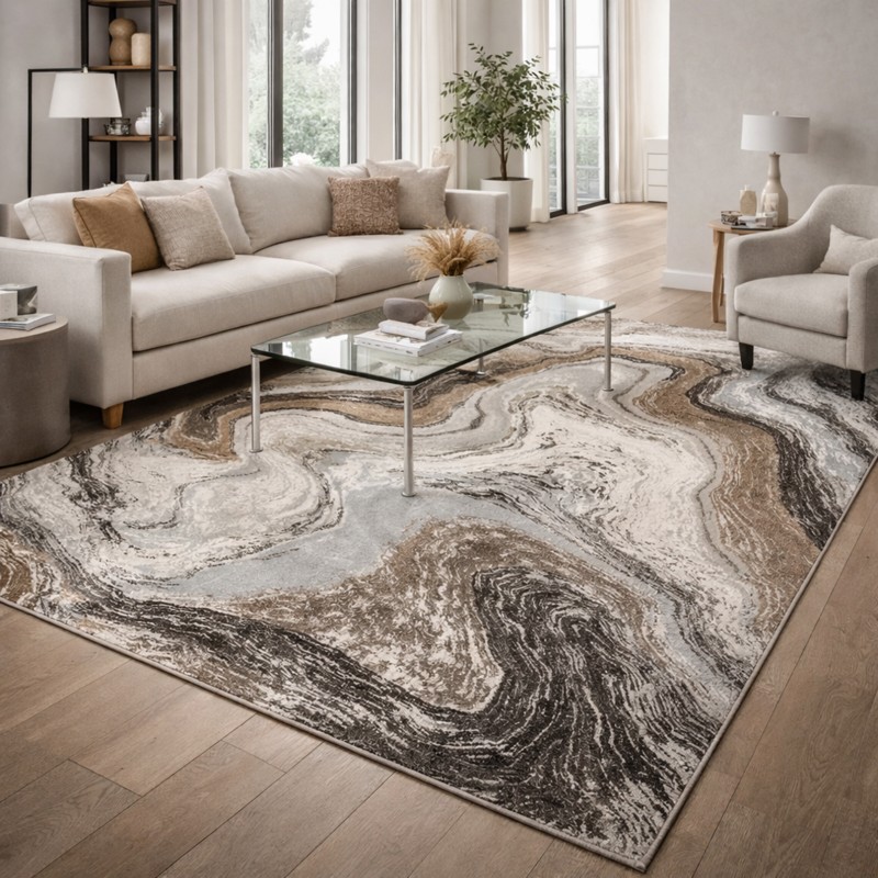 ARGENTO - Tappeto Moderno Effetto Marmo Vintage Sfumato Tortora Beige Grigio Marrone - 63436-9283