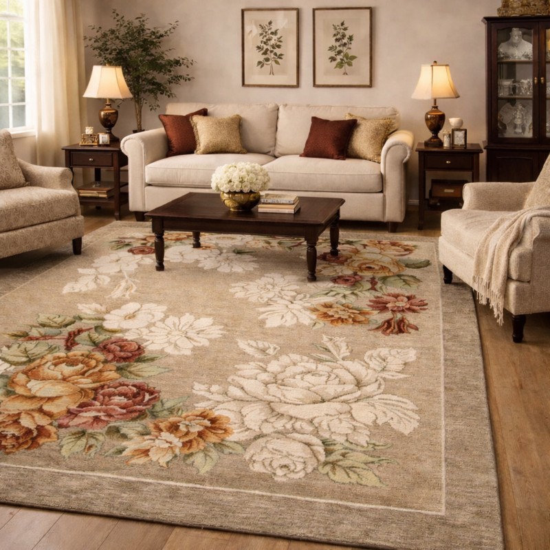 ROSETO - Tappeto Moderno Floreale - Lavabile ed Antiscivolo - Tortora