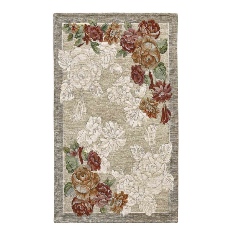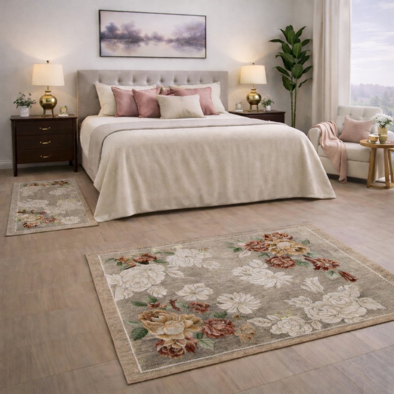 ROSETO - Tappeto Parure Scendiletto Moderno Floreale - Lavabile ed Antiscivolo - Tortora
