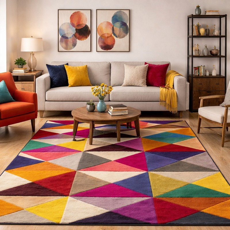 SIMMETRICAL - Tappeto Moderno Scolpito Intarsiato a Mano - Stile Geometrico - Colori accesi - 953