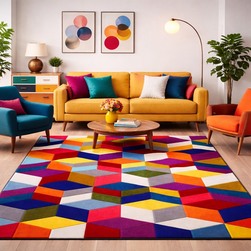 SIMMETRICAL - Tappeto Moderno Scolpito Intarsiato a Mano - Stile Geometrico - Colori accesi - 9815