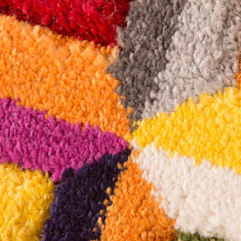 La particolare lavorazione consente di riprodurre fedelmente l’effetto visivo e tattile della lana, esaltato da colori intensi e motivi contemporanei. La scolpitura artigianale a mano definisce i disegni e crea un raffinato effetto tridimensionale, donando al tappeto un aspetto elegante e curato nei minimi dettagli.