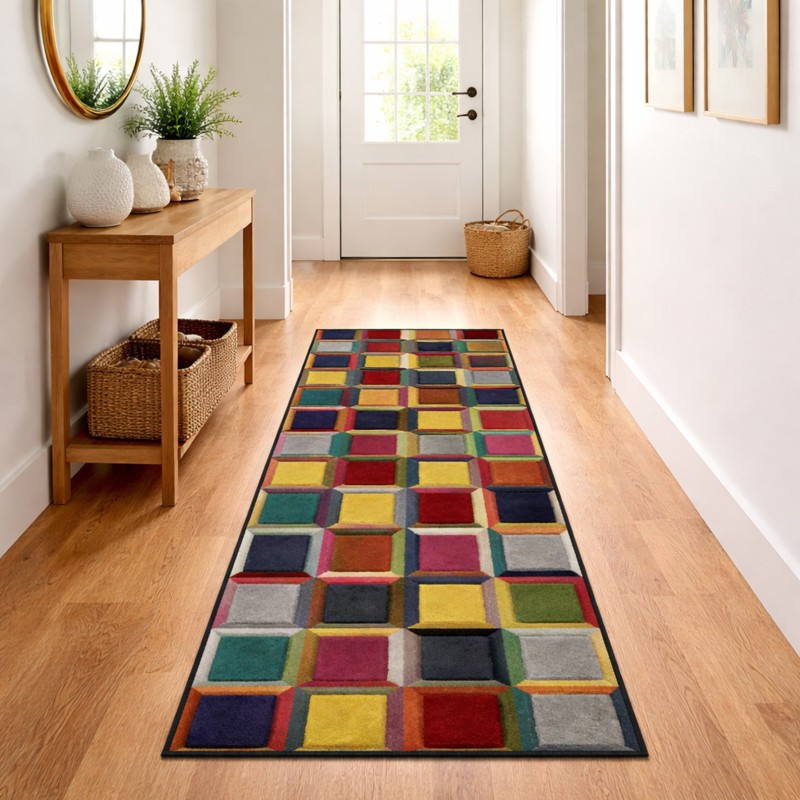 SIMMETRICAL - Tappeto Passatoia Corsia Moderno Scolpito Intarsiato a Mano - Stile Geometrico - Colori accesi - 952