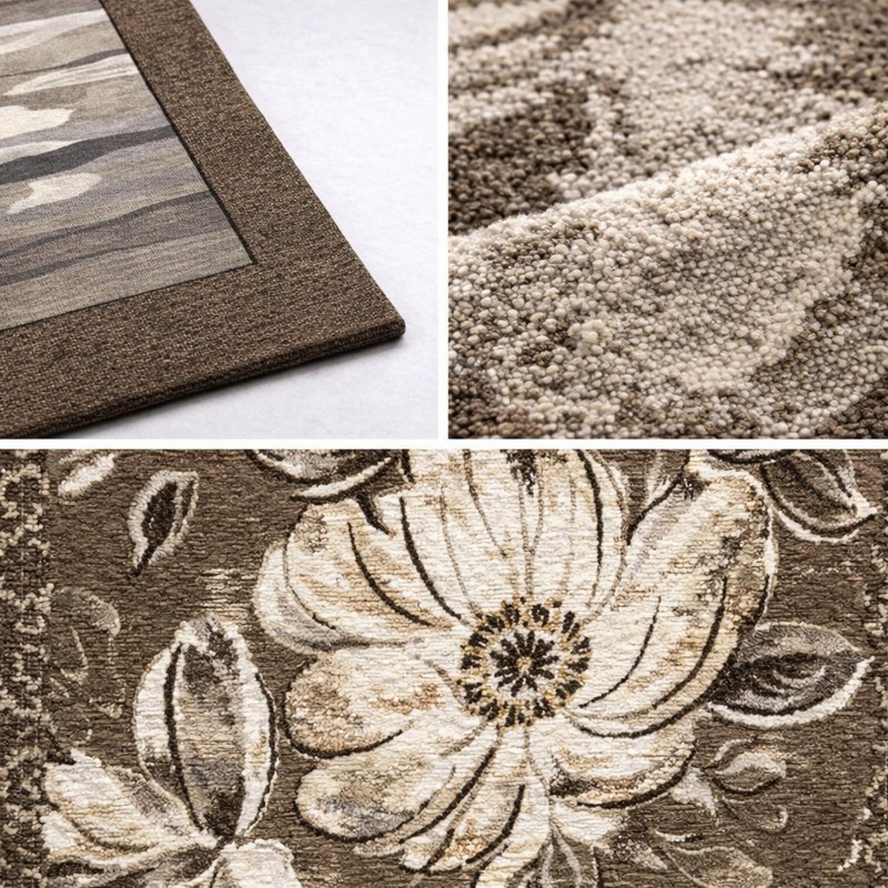 ASTRALIS - Tappeto Passatoia Corsia Moderno Floreale - Lavabile ed Antiscivolo - Marrone Fango
