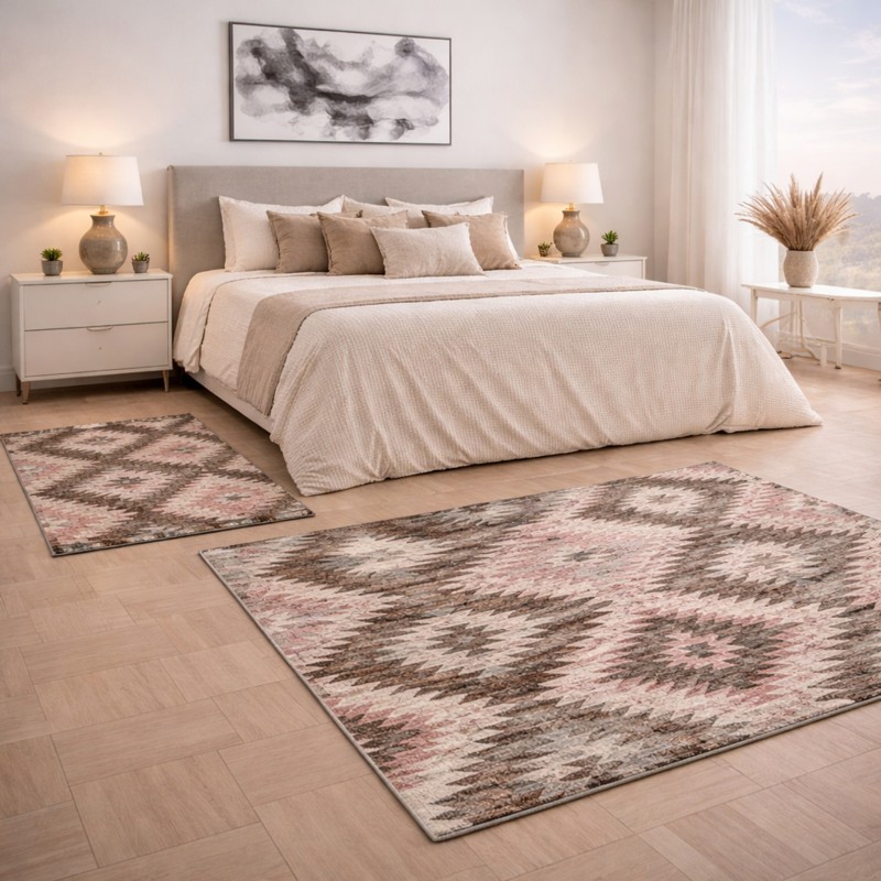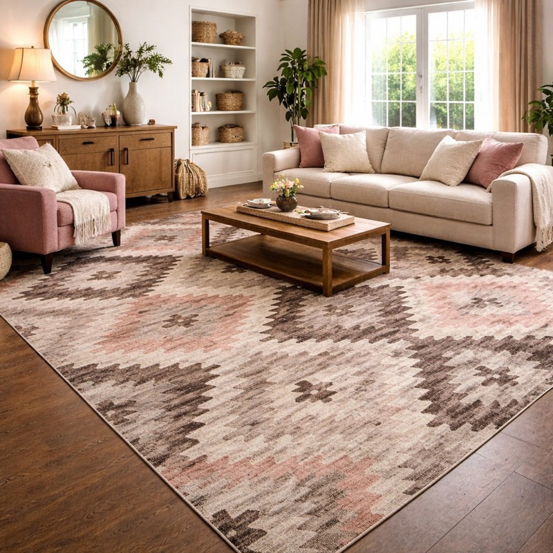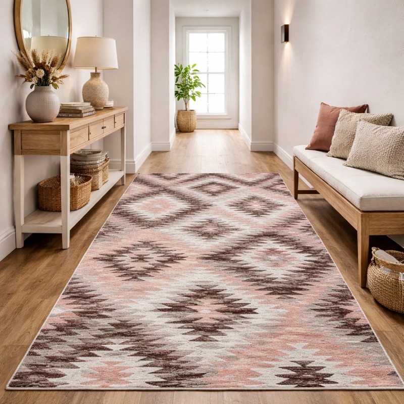 CUBA - Tappeto Moderno Geometrico Kilim - Lavabile ed Antiscivolo - Rosa