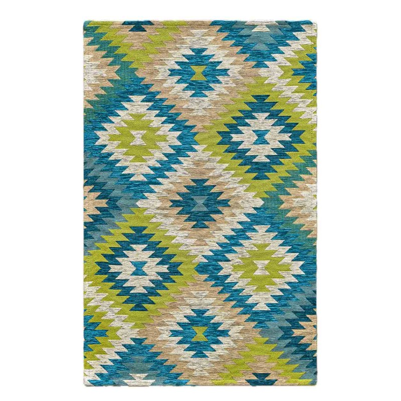 CUBA - Tappeto Parure Scendiletto Moderno Geometrico Kilim - Lavabile ed Antiscivolo - Blu Verde