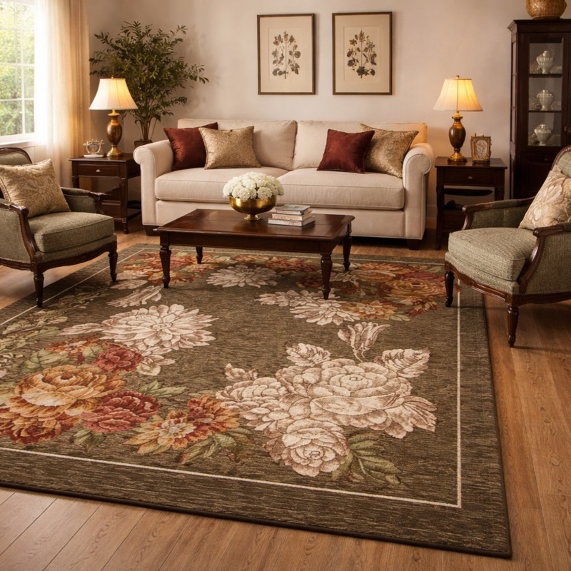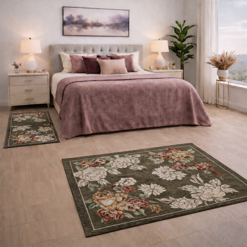 ROSETO - Tappeto Moderno Floreale - Lavabile ed Antiscivolo - Fango