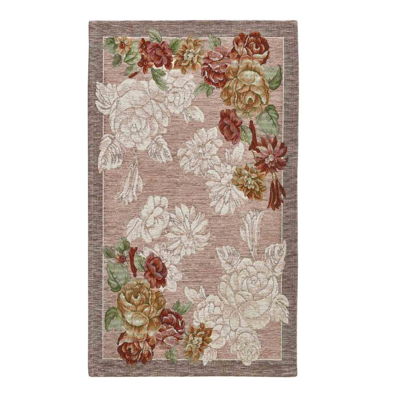 ROSETO - Tappeto Parure Scendiletto Moderno Floreale - Lavabile ed Antiscivolo - Cipria