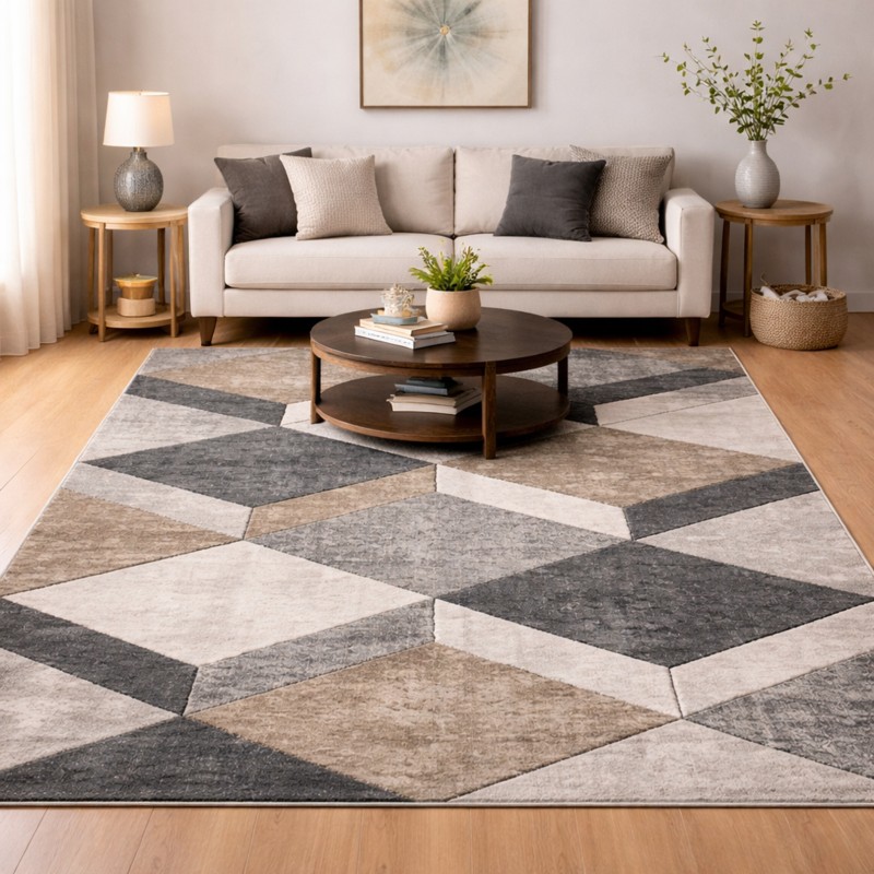 FUSION - Tappeto Moderno Sfumato Geometrico Melange - 8521 Grigio Beige