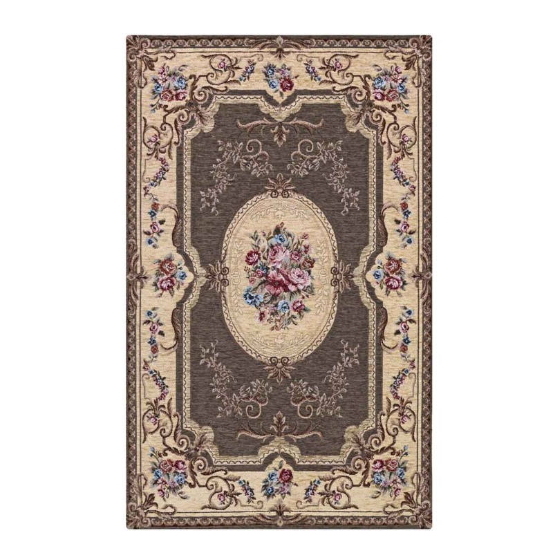 AUBUSSON - Tappeto Parure Classico Stile Francese '800 Ciniglia Jacquard - Fango
