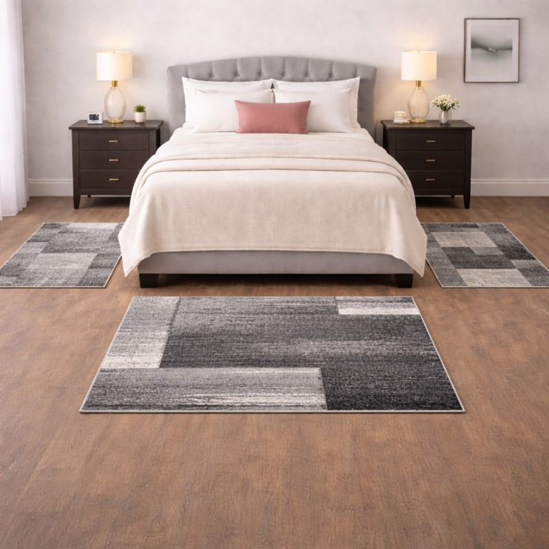 FUSION - Tappeto Parure Scendiletto Moderno Sfumato Geometrico Melange - 57431 Grigio